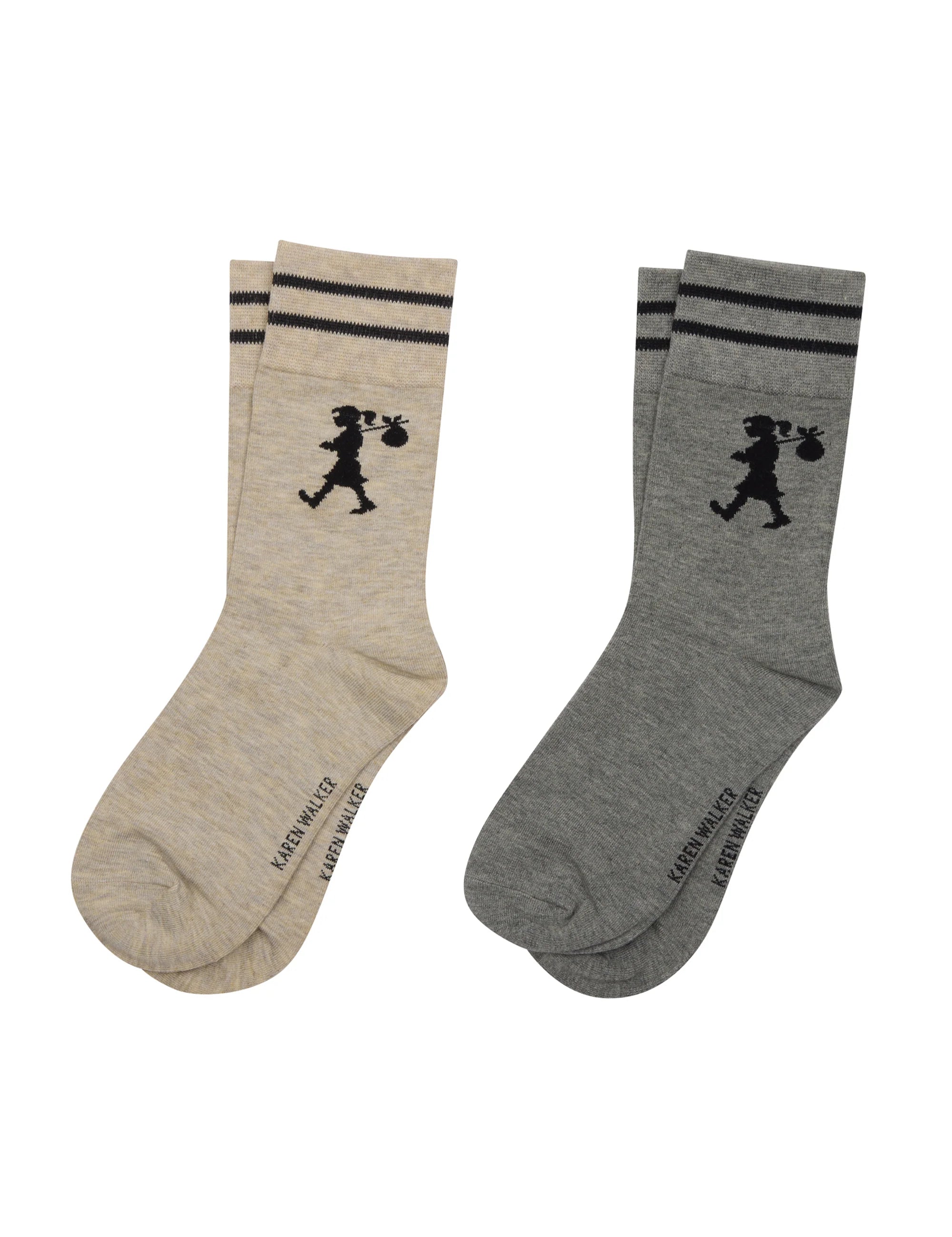 Runaway Girl Socks 2 Pack Natural/Grey/Black One Size