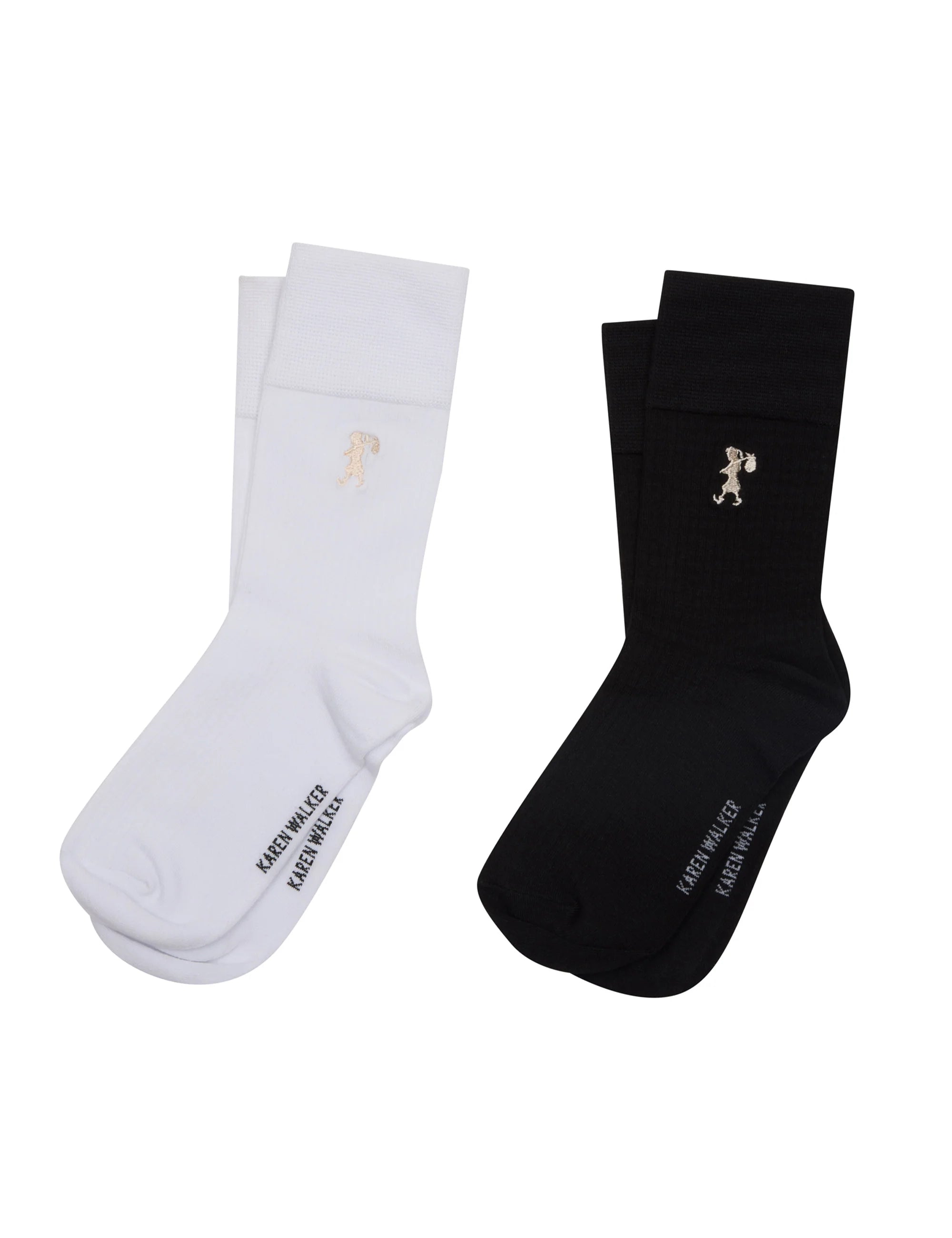 Runaway Embroidered Socks 2 Pack Black/White One Size by Karen Walker