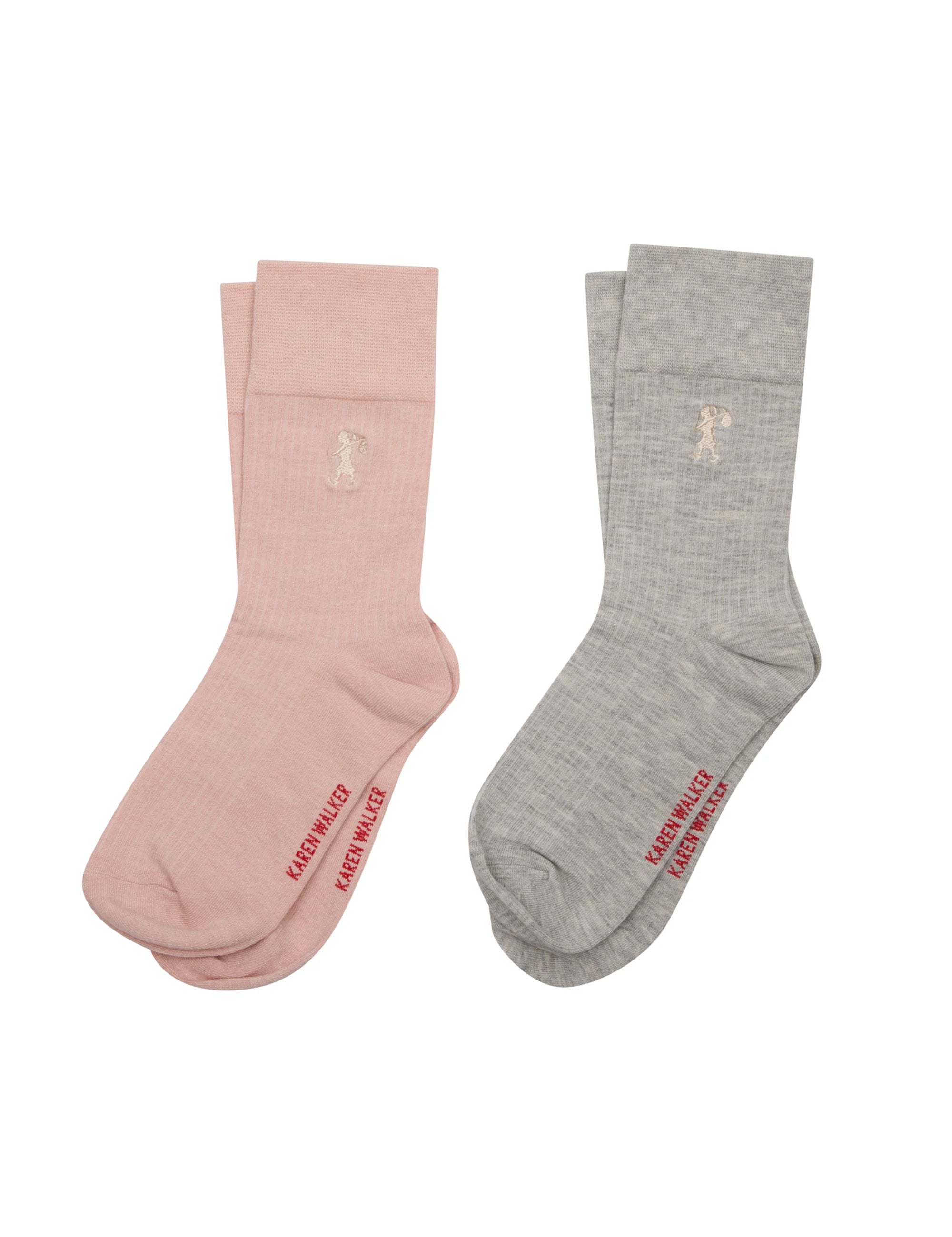 Runaway Embroidered Socks 2 Pack Blush/Light Grey One Size by Karen Walker