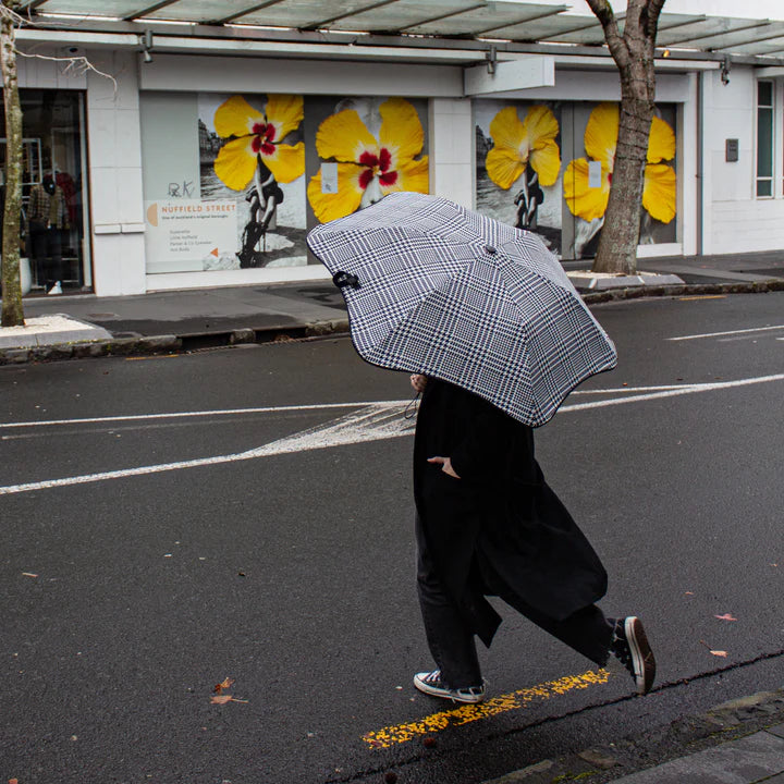 Where effortless style meets functional design, the houndstooth is a staple print that never loses its flair. Featured in a monochromatic palette, the BLUNT Houndstooth is the perfect choice to accompany a sophisticated wardrobe.