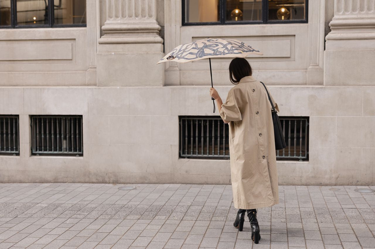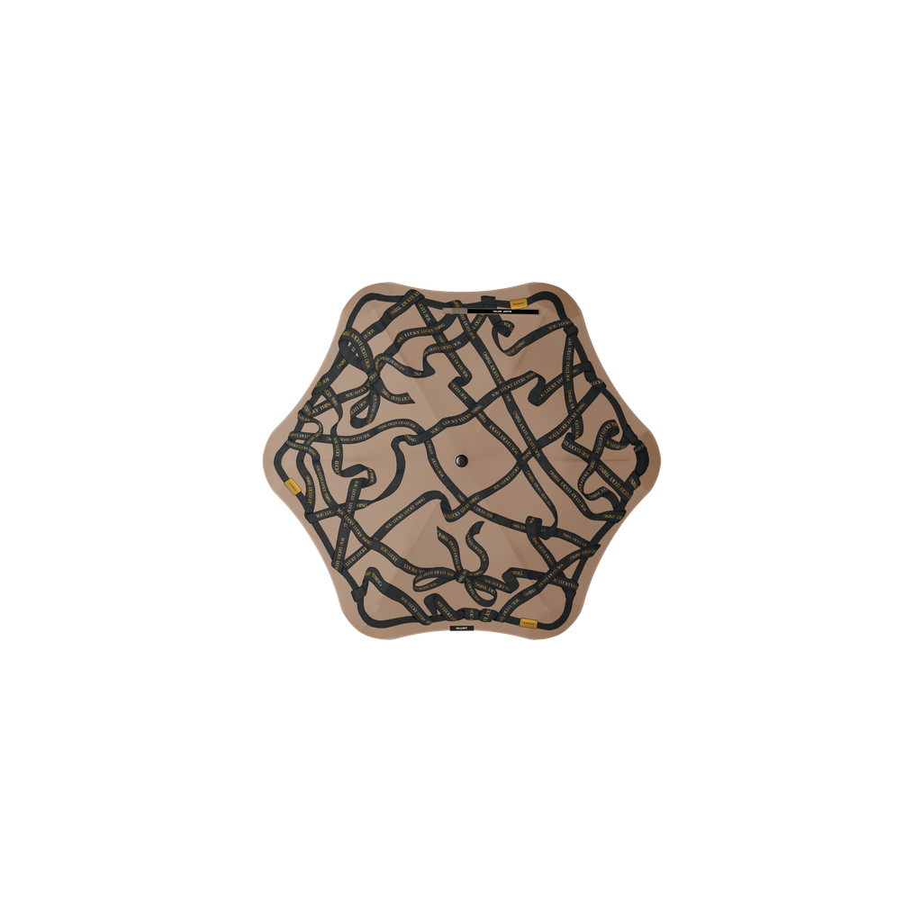 Introducing the latest Saben x Blunt umbrella collaboration. Dressed in Saben's signature "You Lucky Lucky Thing" tagline in a playful ribbon design, you’ll face unpredictable weather with a little more style. The blunt Metro size is the go-to umbrella for days where you’re not sure what’s on the horizon. It conveniently fits in your handbag, tote, or Roma's umbrella pocket so you’re always prepared, whatever the weather. An auto-open button pops open the canopy for instant cover at your fingertips. Built with unique 360° spinning technology, the Metro’s canopy is designed to elegantly handle knocks when navigating narrow spaces. Once you’re done, simply collapse the canopy and slip it back into its carry sleeve. The Metro is sized perfectly for one with 100cm coverage.