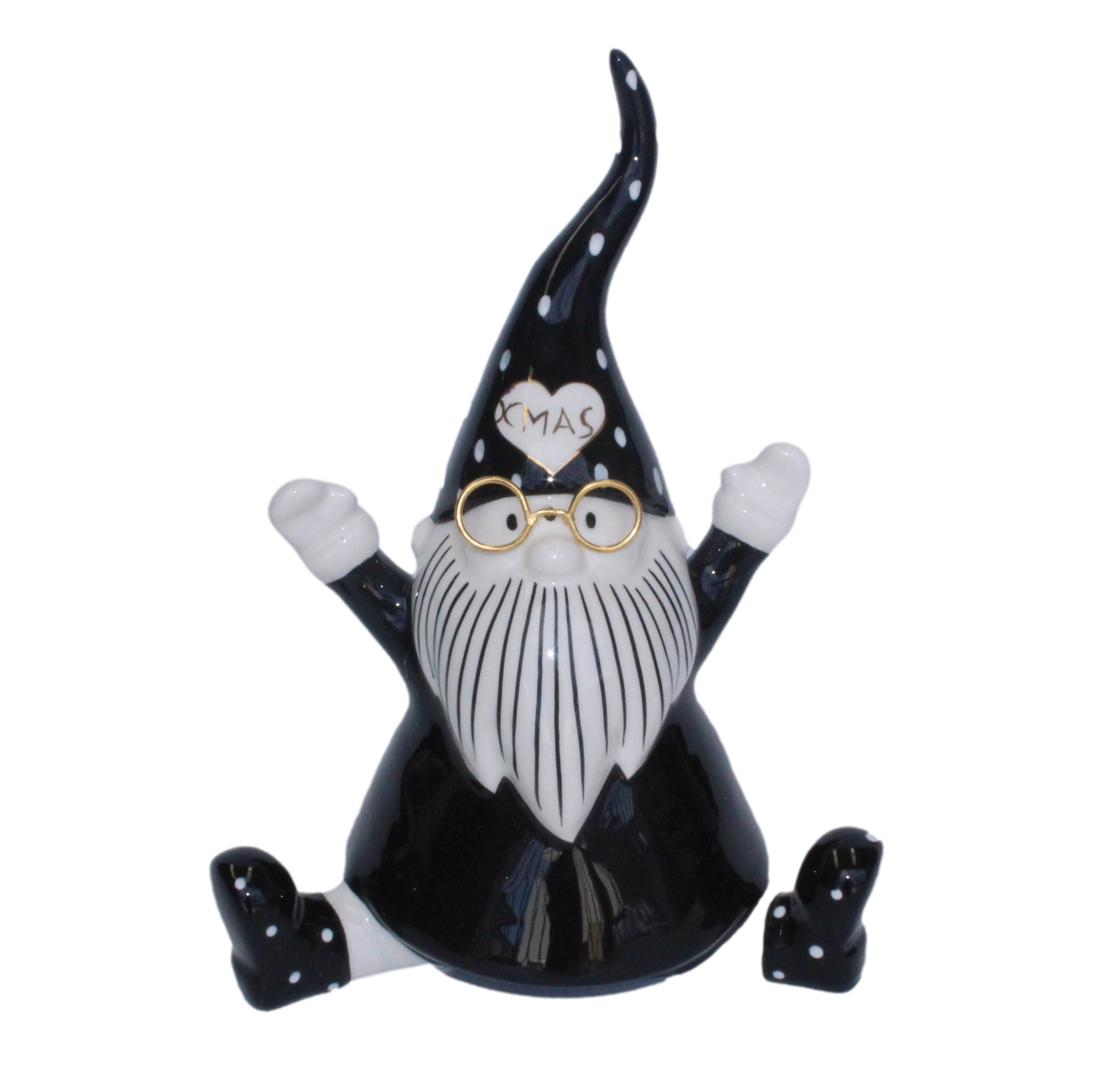 Quirky Sitting Santa Black and White 19cm