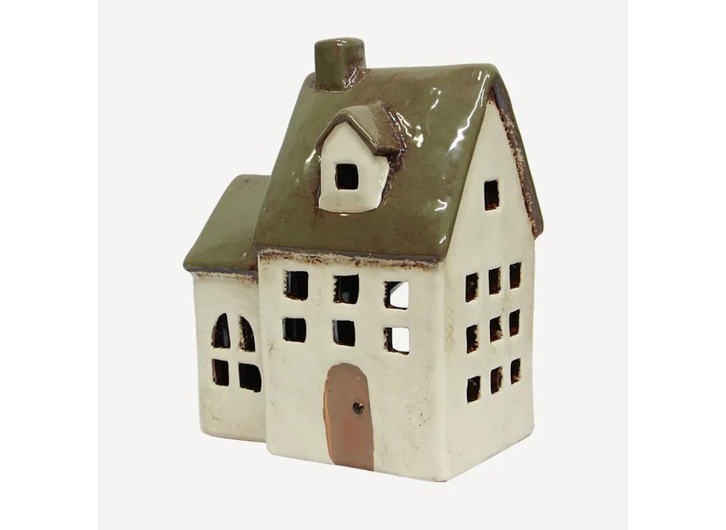 Alsace Tea Light Chapel Olive Green measures 14cmL x 9.5cmW x 18cmH