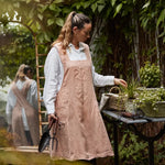 Relaxed cross back slip on apron in stonewashed pale pink. Made from 100% linen, this easy wearing apron is one size fits all.