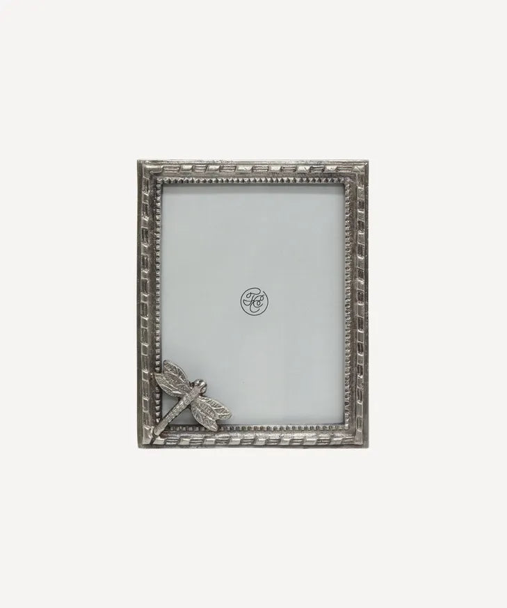Silver metal photo frame with dragonfly motif and bamboo detailing. The perfect way to display treasured photos.