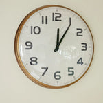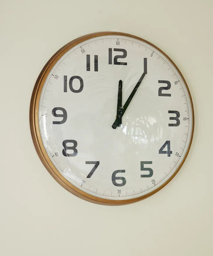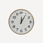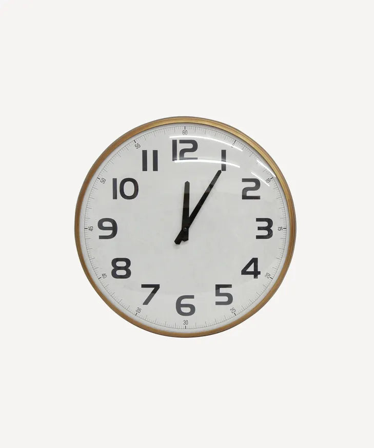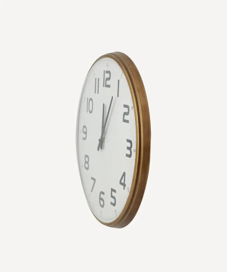 Industrial style wall clock with numbers and a sophisticated antique gold frame.