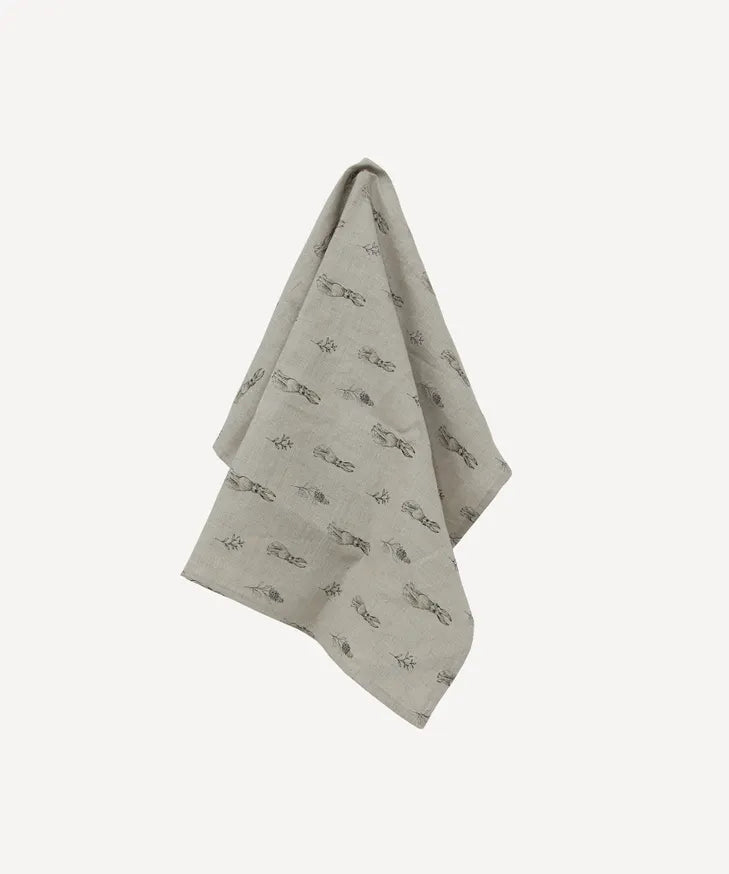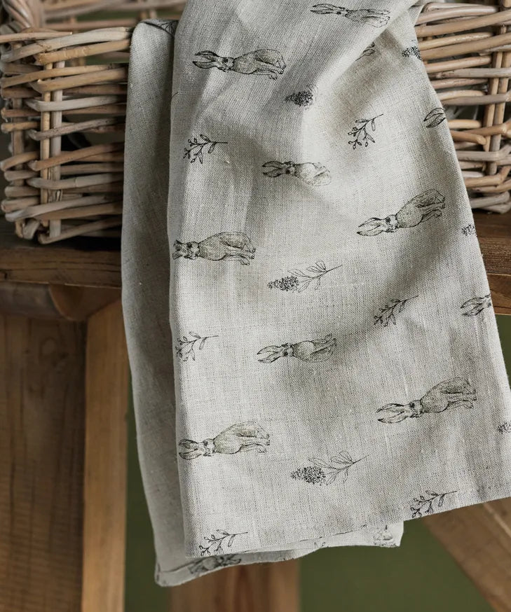 Made from 100% linen, this charming teatowel features "Harold the Hare" in a delightful and repetitive botanical print. The natural fibers of linen make this tea towel exceptionally absorbent while also bringing a luxurious touch to your kitchen décor.