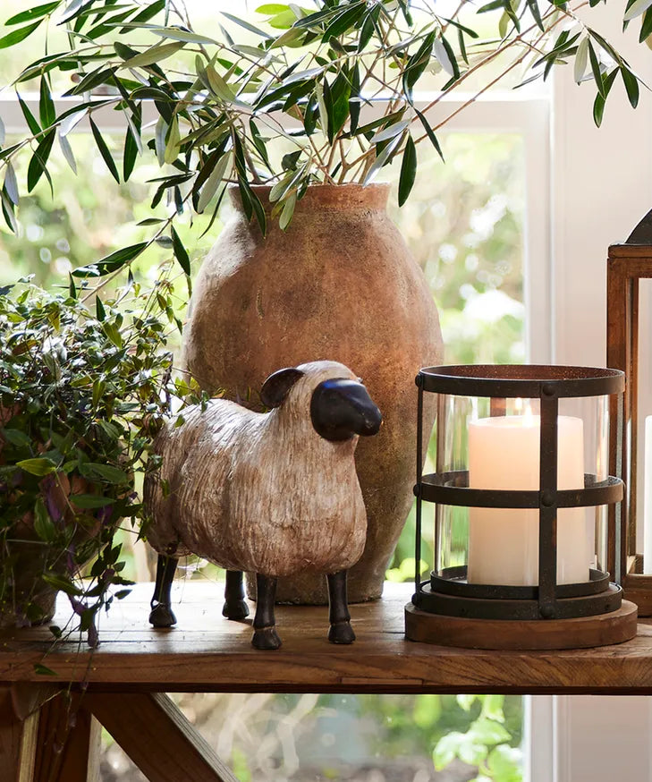 Sheep décor adds charm and character to shelving or outdoor spaces.