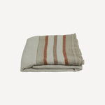 French Riviera inspired stripe throw in muted tones with frayed edges and a herringbone weave. Made from 100% heavy linen.