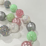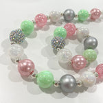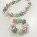 All Bubblegum Bella jewellery is made with double looped high quality elastic for durability and easy put on and take off for even the smallest jewellery wearer. Beads are 2cm in diametre and made of lightweight acrylic. All designs are now packaged in custom designed Bubblegum packaging. The jewellery looks so gorgeous in the new reusable zip bags. Beads and packaging are both recyclable.