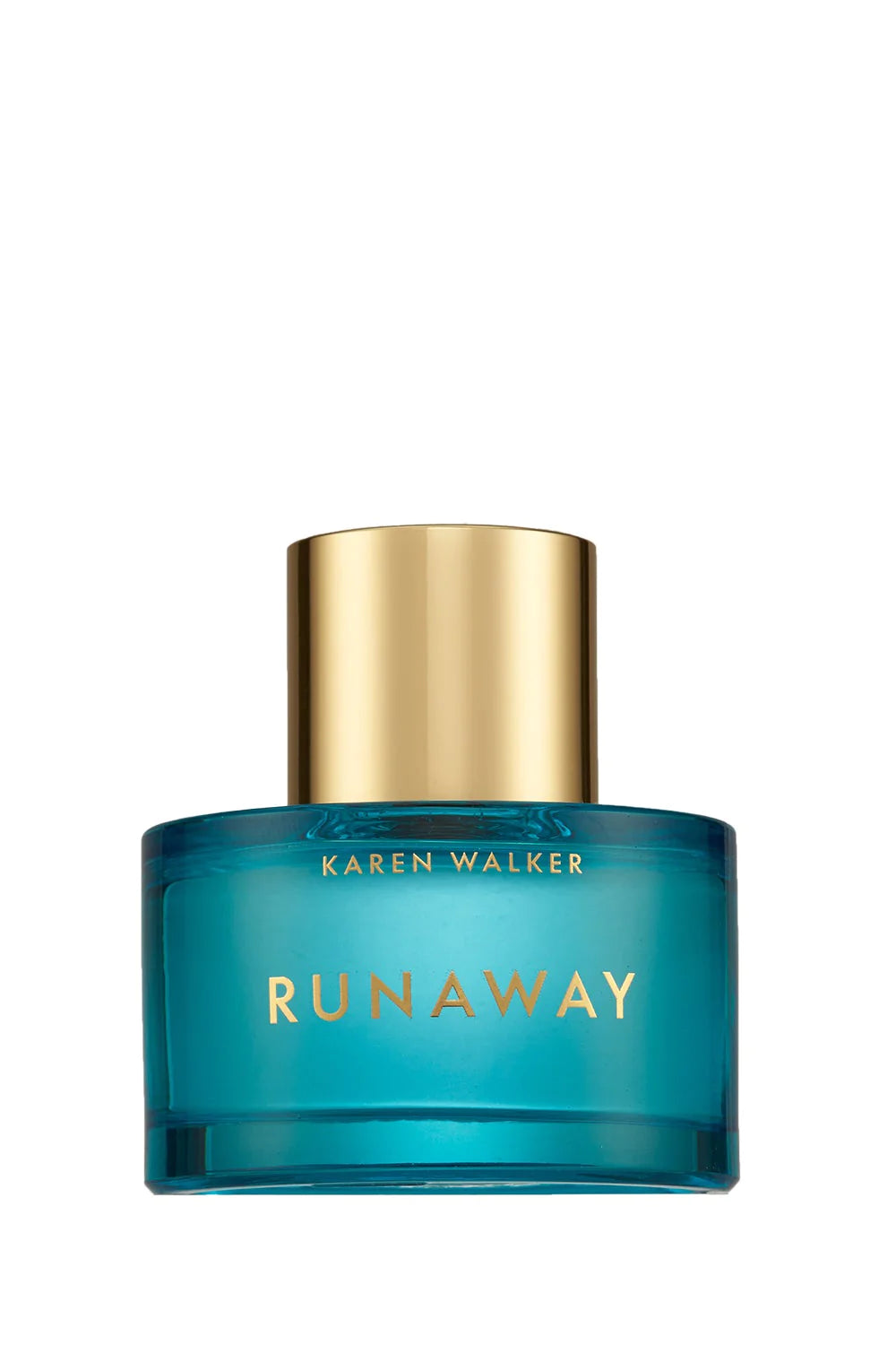 Karen Walker Runaway Azure seeks out an escape to an exotic, uncharted atoll where the sea is a perfect shade of aquamarine and the air is warm and rich, redolent with luscious kumquat, sun-ripened driftwood and jungle vanilla.
