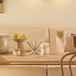 Natural soy wax is blended with one of three limited edition High Summer fragrances and poured into a chic white ceramic vessel, finished with a bespoke braided handle in seasonal tones. Designed to elevate any space, the candle features brushed gold hardware and no lid, offering a relaxed, coastal aesthetic. Enjoy up to 80 hours of burn time.