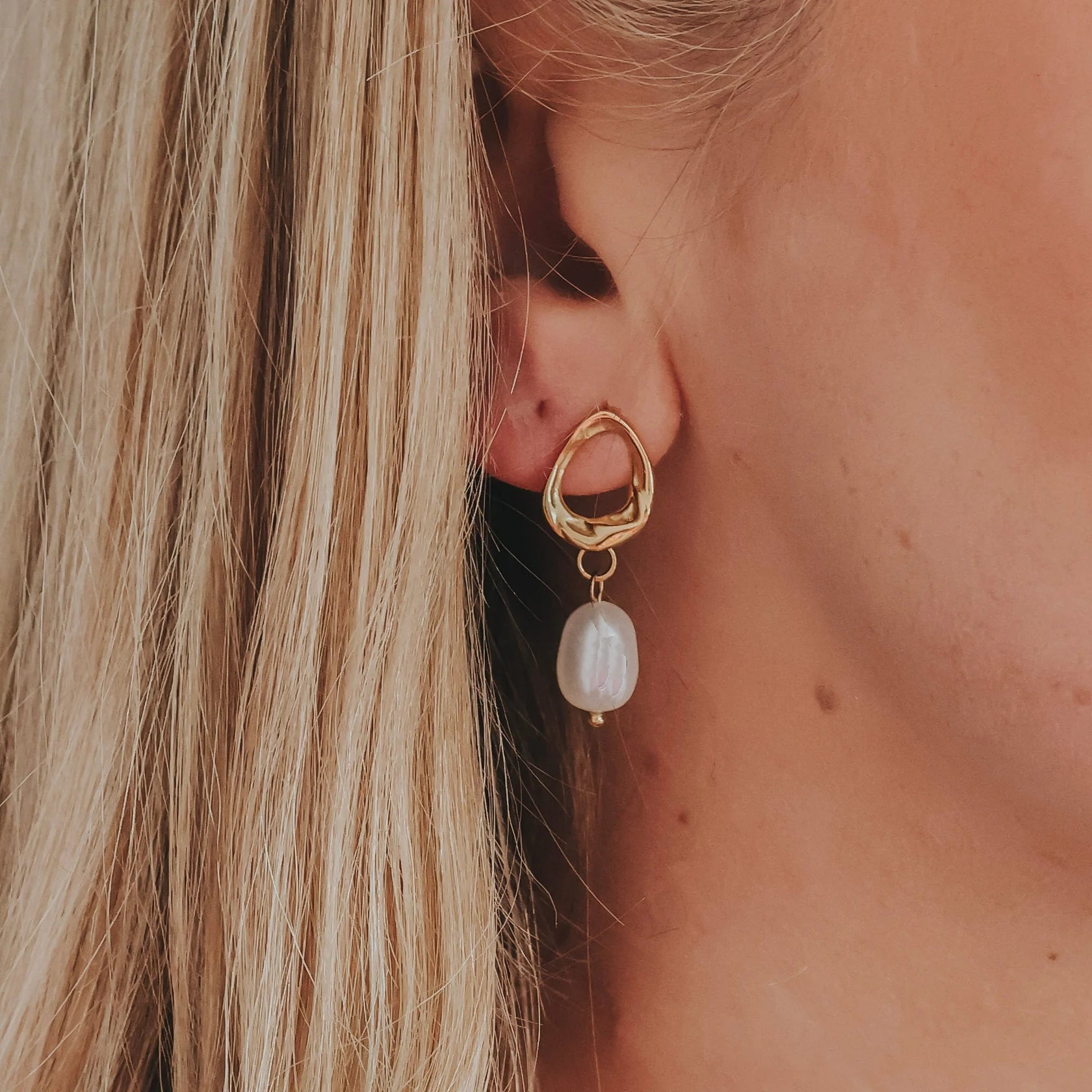 Simple, elegant, and effortless. A textured stainless stud with a single pearl drop.