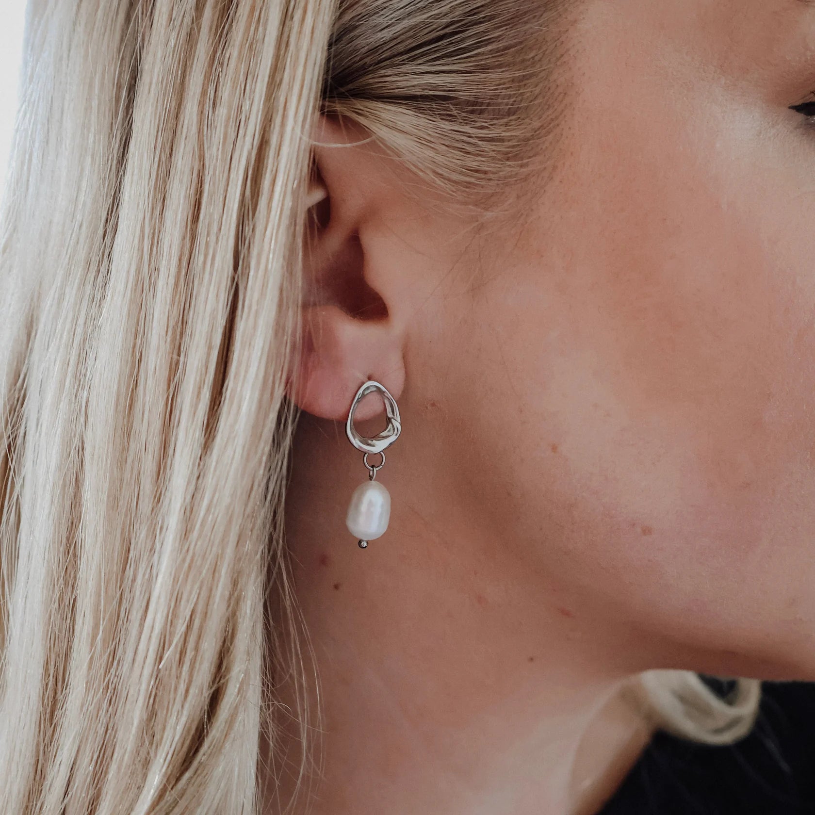 Simple, elegant, and effortless. A textured stainless stud with a single pearl drop.