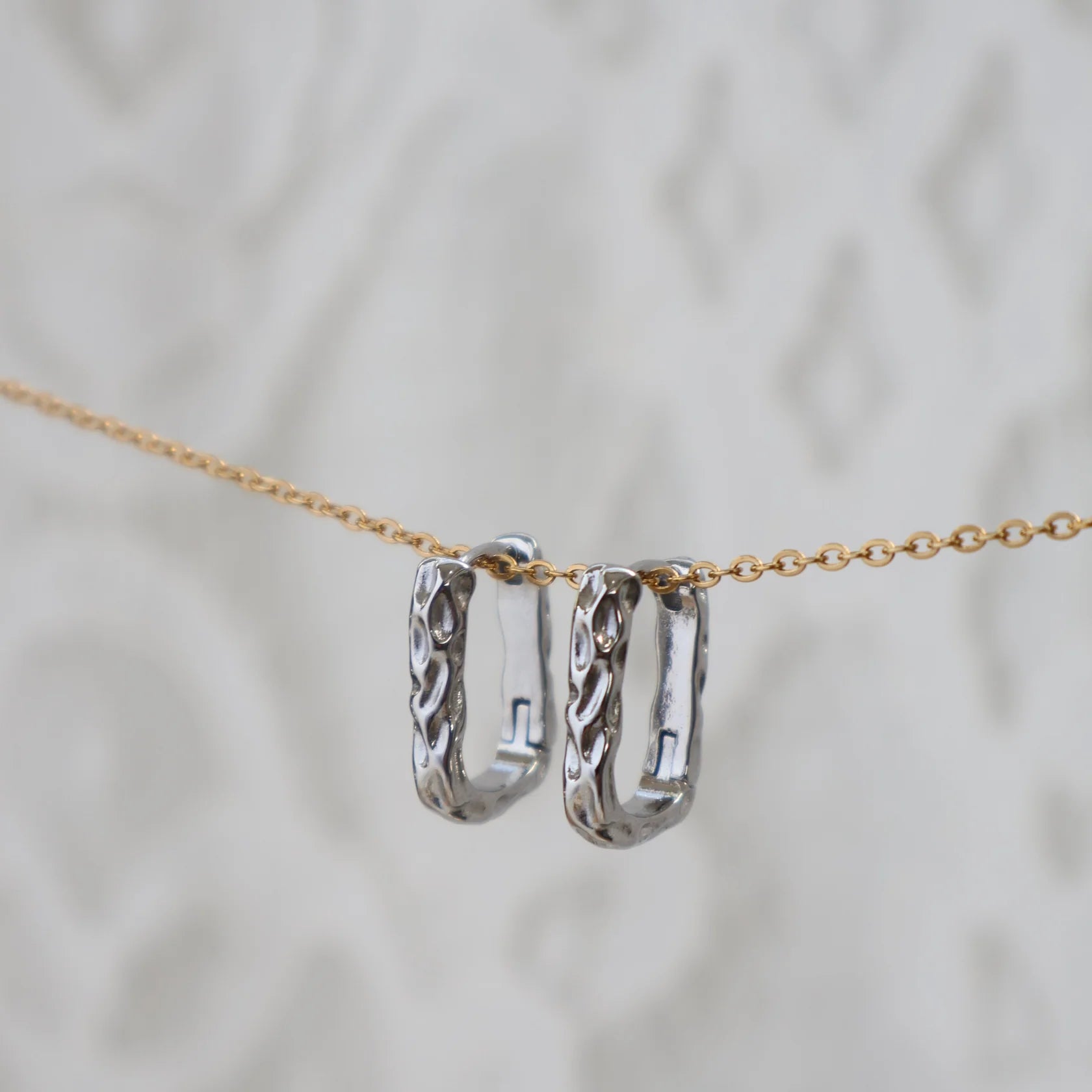 New and improved Crater hoops are back - our new release are back to our signature darker stainless steel. Gold 18k PVD plated
