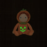 • Posable body with gentle weighting inside for the perfect cuddle. • Glow-in-the-dark embroidered pumpkin carving on a plush velvet onesie. • Hood is non-removable but can be worn up or down. • Soft cotton and polyester blend body. • Olli Ella recommends supervision at all times. Follow SIDS safe sleeping guidelines. • Age recommendation: 18+ months. • A charming Halloween (or anytime!) soft toy companion.
