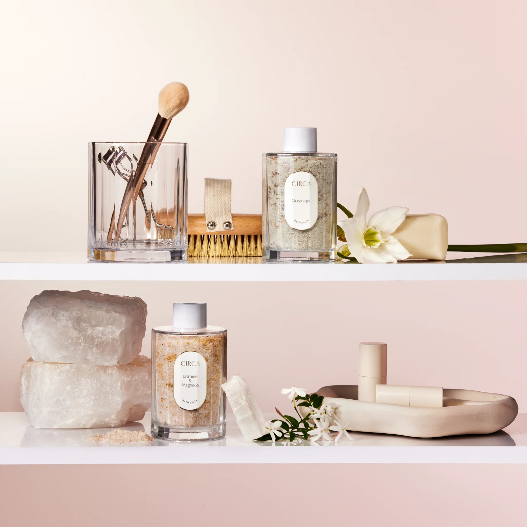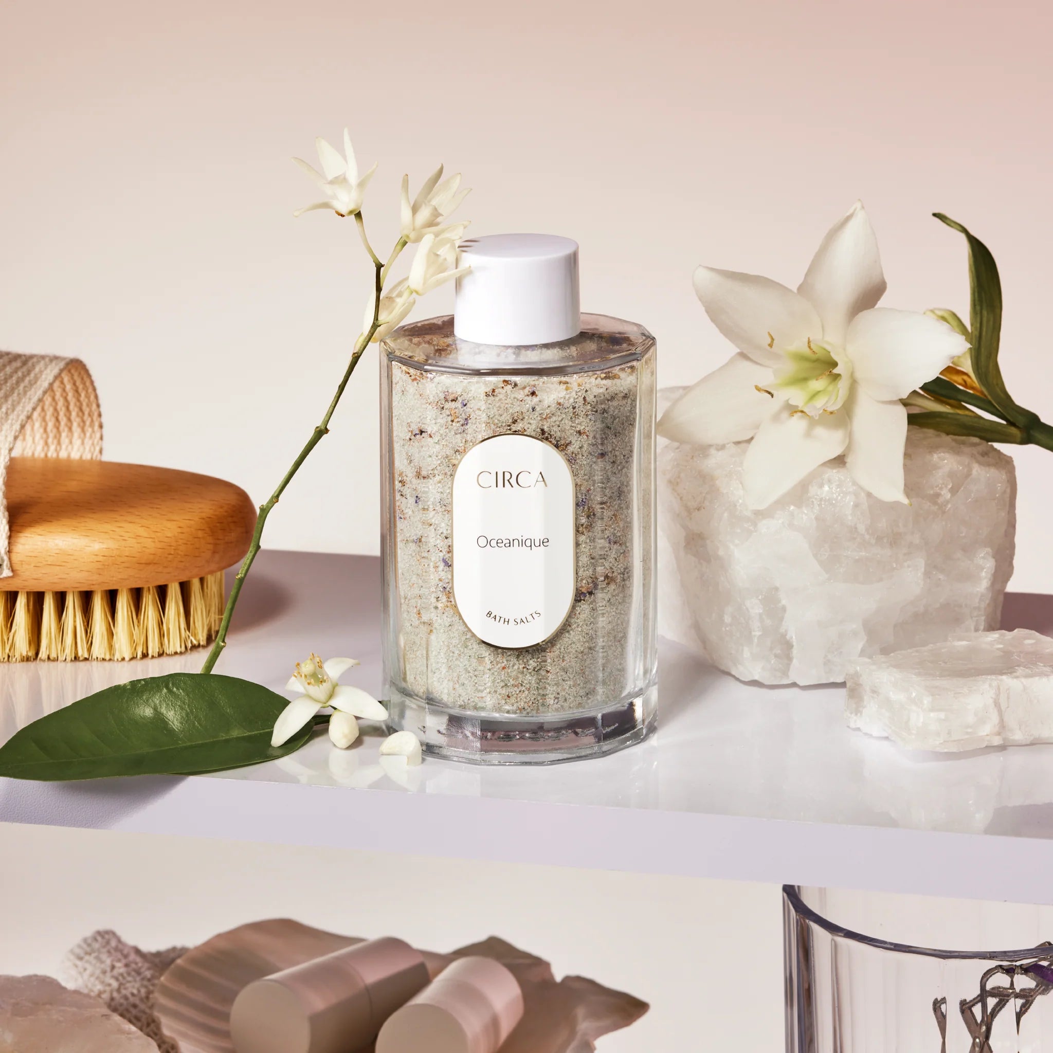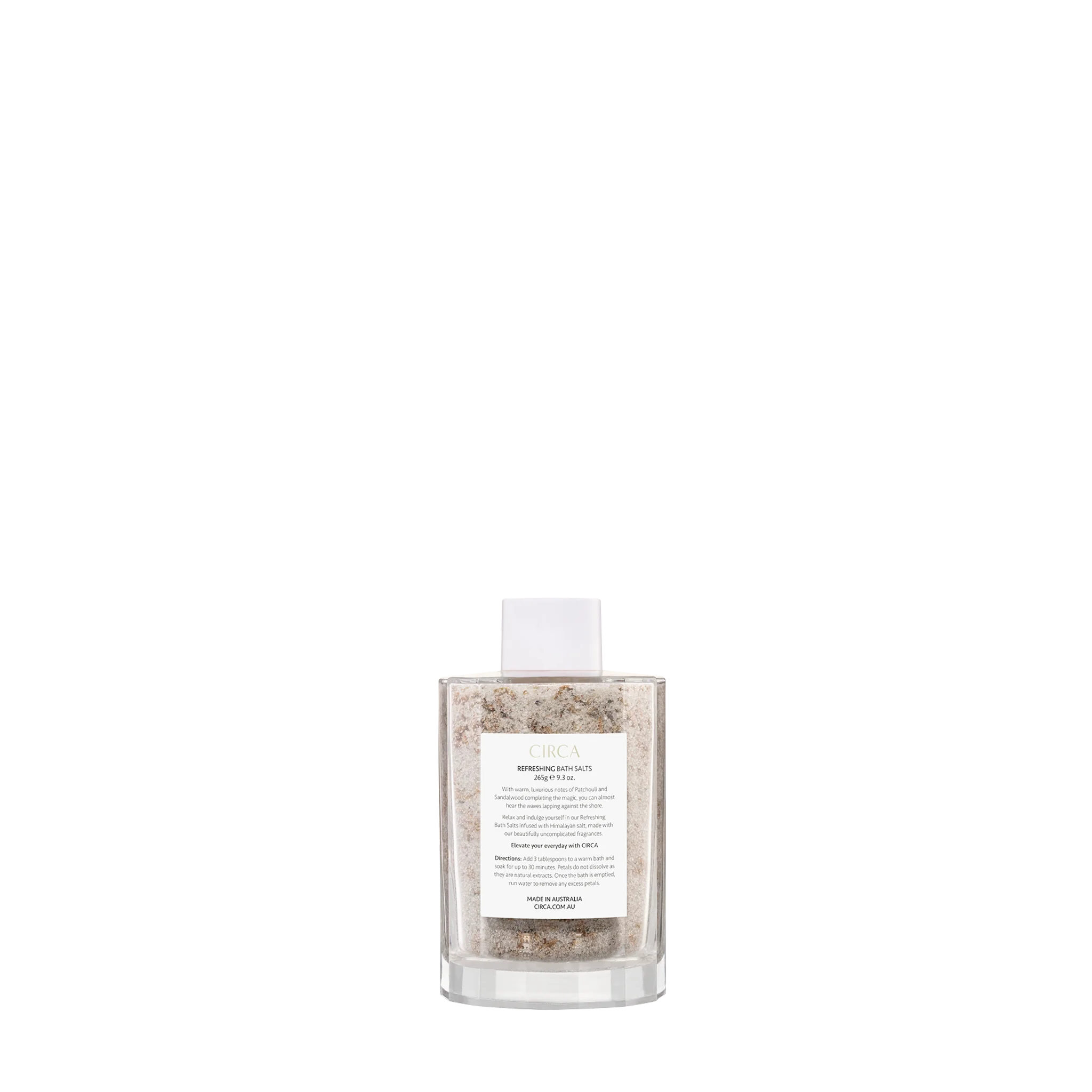 Indulge in our refreshing bath salts infused with Himalayan Salt, featuring luxurious Patchouli and Sandalwood notes that transport you to a tranquil seaside setting.